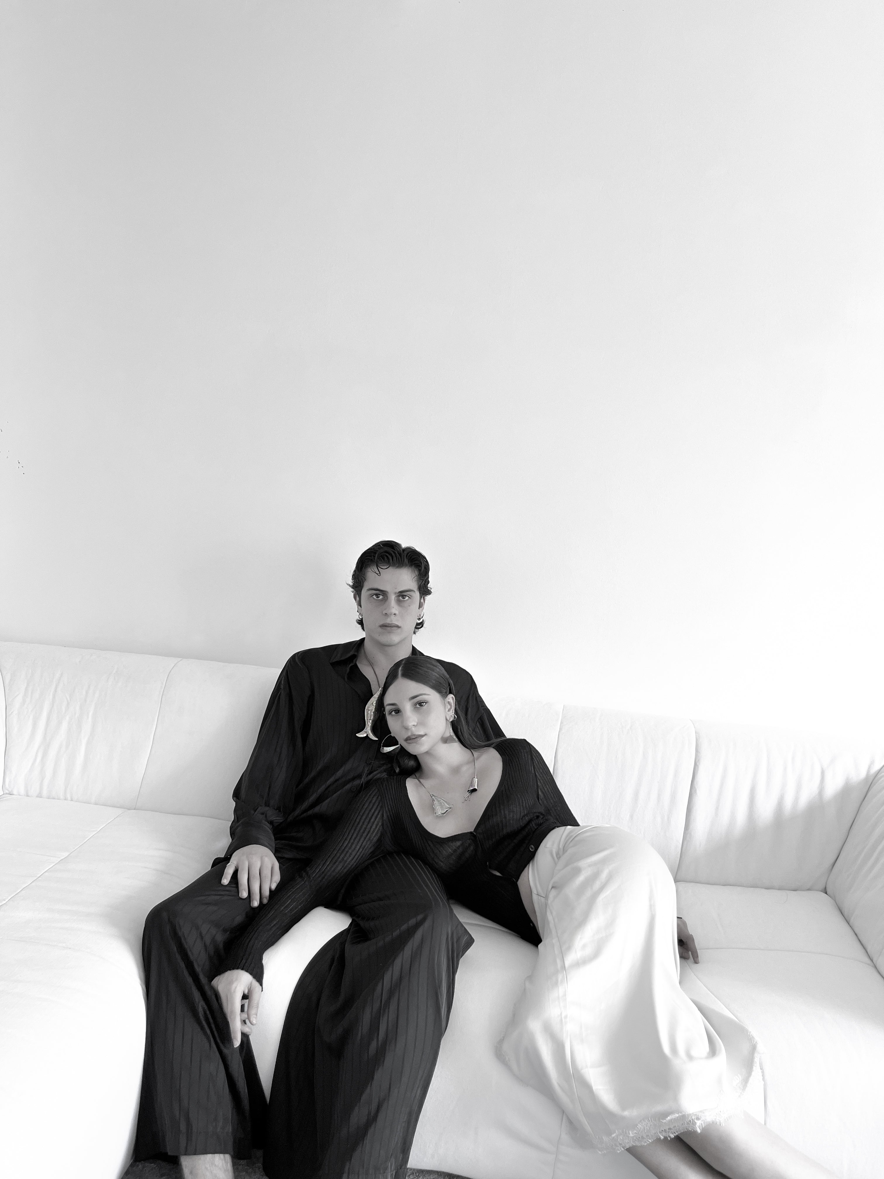 Agua nasce dall’unione di due percorsi diversi ma complementari: quello di Alice, stylist con una forte passione per i viaggi e l’esplorazione culturale, e quello di Gianmarco, laureato in economia e finanza, con un interesse per la natura, il mare e uno stile di vita essenziale e autentico.